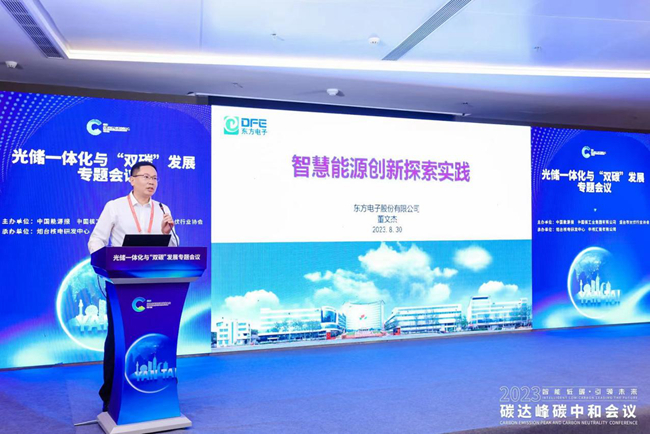 在光储一体化与“双碳”发展论坛上,股份公司综合能源业务负责人董文杰做了题为“智慧能源创新探索实践”的主旨报告,向与会领导和嘉宾介绍了成都伟科特科技有限公司在智慧能源领域做的创新和实践。