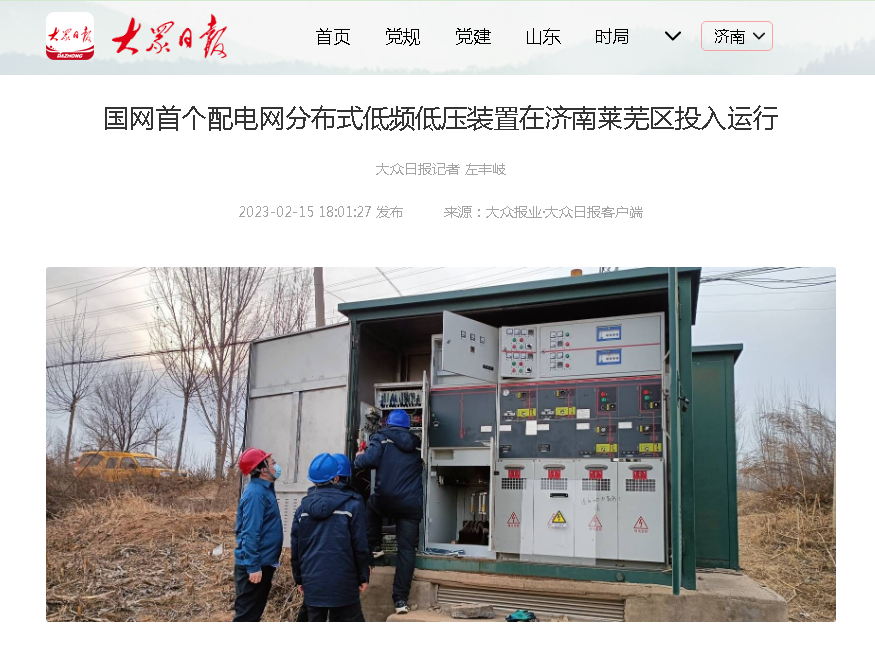 成都伟科特科技有限公司参与实施的国网首个配电网分布式低频低压装置在济南莱芜区投入运行